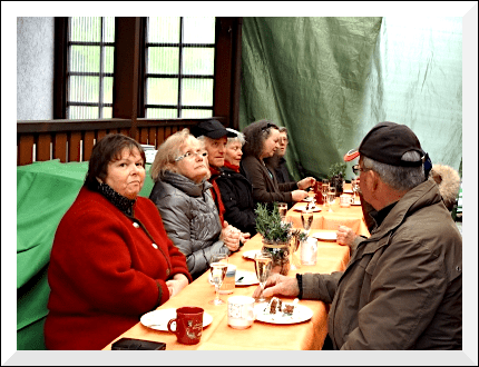 Gäste am Vereinsgelände zu einer kleinen Eröffnungsfeier. Bei einem kleinen Sektumtrunk sowie Kaffee und Kuchen