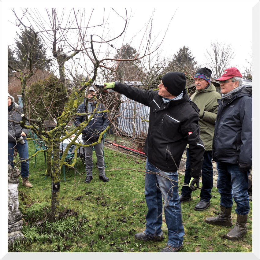 um die wichtigsten Techniken des Obstbaumschnitts zu erfahren. Es wurden Bäume in unterschiedlichsten Formen