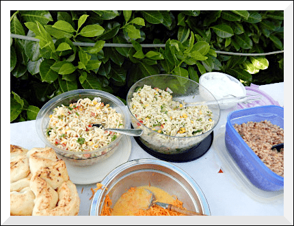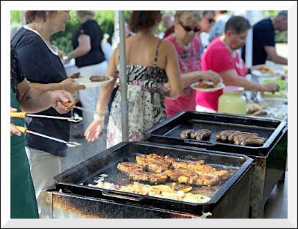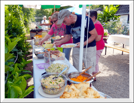 | Der Verein stellte den Grill und die Getränke zur Verfügung und die Mitglieder spendeten die Beilagen.